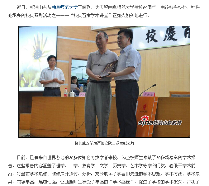 新浪网报道链接:球友会网站登录入口举行“校庆百家学术讲堂” 促进曲园学术繁荣