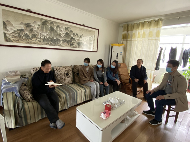 曲阜师大新闻中心讯 上门听学,红色传承。为深入开展党史学习教育,5月7日上午,离退休教职工党委退休第八党支部与文学院党委本科生党支部联合开展“上门听学”共建活动。离退休教职工党委党委委员满孝俊、退休第八党支部书记刘西雷、支部委员高翠兰、杜广彬、文学院党委本科生党支部书记刘伟及本科生党员参加了活动。
