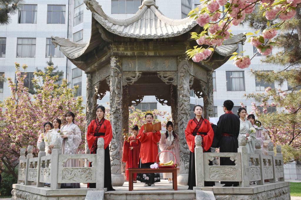 曲阜师大新闻中心讯 了解传统习俗,弘扬优秀传统文化。4月10日,由学校团委主办、历史文化学院团委及洙泗学社承办的第一届“鸢飞四月赏芳辰,羽衣霓裳庆花朝”汉服节系列活动暨第四届花朝节举办。