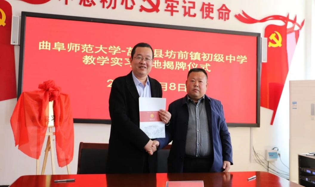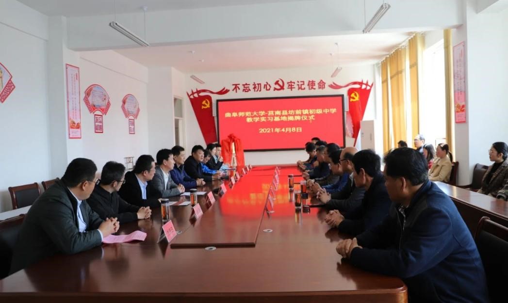 曲阜师大新闻中心讯 4月8日上午,为深化师范专业教育教学改革,推进球友会网站登录入口与地方学校的合作,体育科学学院在学校派驻莒南县坊前镇第一书记工作组的支持下,在莒南县坊前中学举行教学实习基地揭牌仪式。学院党委书记刘敏、院长助理曾凡鑫、伊超等,球友会网站登录入口派驻坊前镇第一书记工作组王慕东、魏伟、刘建河、钟振洪、孔喜良,坊前镇党委政府主要负责同志以及坊前中学负责人、部分教干、教学骨干参加本次仪式。坊前镇党委副书记刘泉田主持仪式。