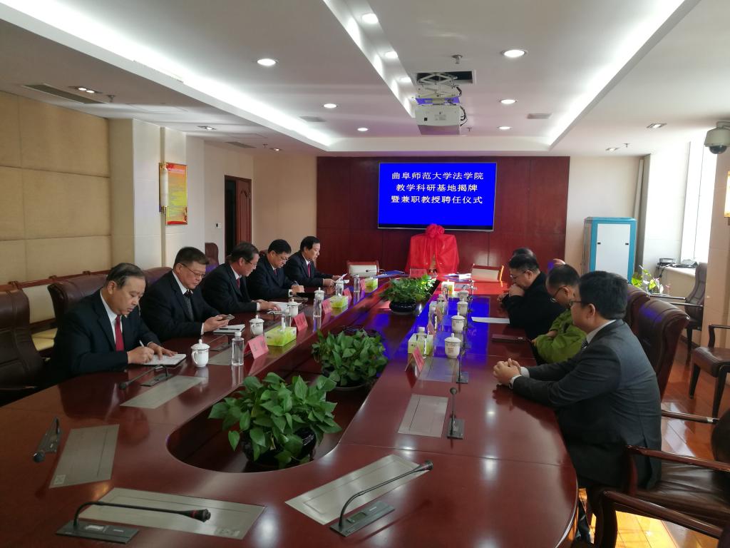 2018年12月28日,我校法学院院长张益刚一行赴诸城市检察院,参加教学科研基地揭牌暨兼职教授聘任仪式。诸城市检察院党组书记、检察长王彦青及部分党组成员、检察委员会专职委员出席揭牌暨聘任仪式。活动由诸城市检察院党组副书记、副检察长解绍波主持。