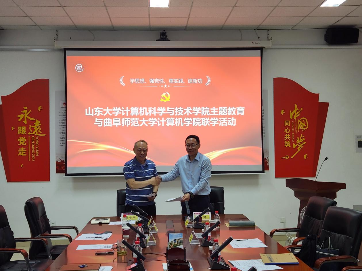 曲阜师大计算机学院讯 按照学校党委关于学习贯彻习近平新时代中国特色社会主义思想主题教育工作部署,切实发挥调查研究的实际作用,找准基层党建在新时代的着力点,实现高质量党建推动学院高质量发展的工作目标。5月31日,计算机学院党委书记、院长和学院调研组一行5人,赴山东大学计算机科学与技术学院开展调研和“党建共建”活动。
