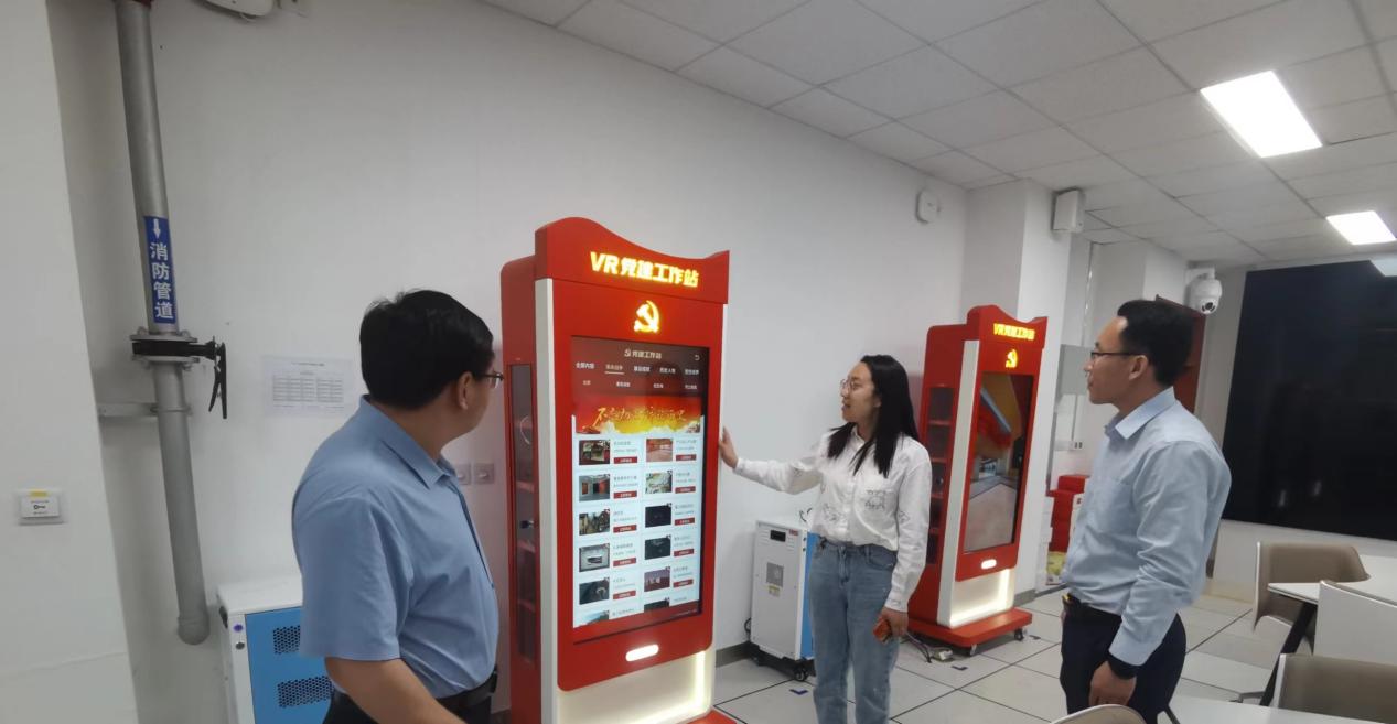 会后,调研组参观了山东大学计算机科学与技术学院VR党建工作站。通过专业融合,联合多个学科和企业,通过数字化时代的新型展示方式,让学生随时随地学党史、学红色精神、学理论知识,更深入地了解到红色历史与文化,传承红色革命精神。