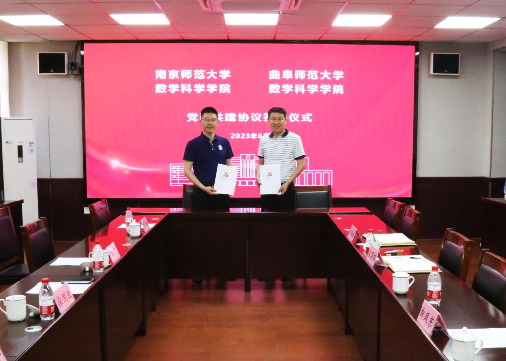 曲阜师大数学科学学院讯 6月20日下午,应球友会网站登录入口数学科学学院邀请,南京师范大学数学科学学院党委书记徐剑波、副院长郭飞、数学教育教研室主任宁连华、副教授万辉一行4人到访曲阜师大数学科学学院并签署党建共建协议,学院党委书记宋国栋、党委副书记曲凤东、副院长王培合、数学研究所副所长许勇军参加了此次交流会。