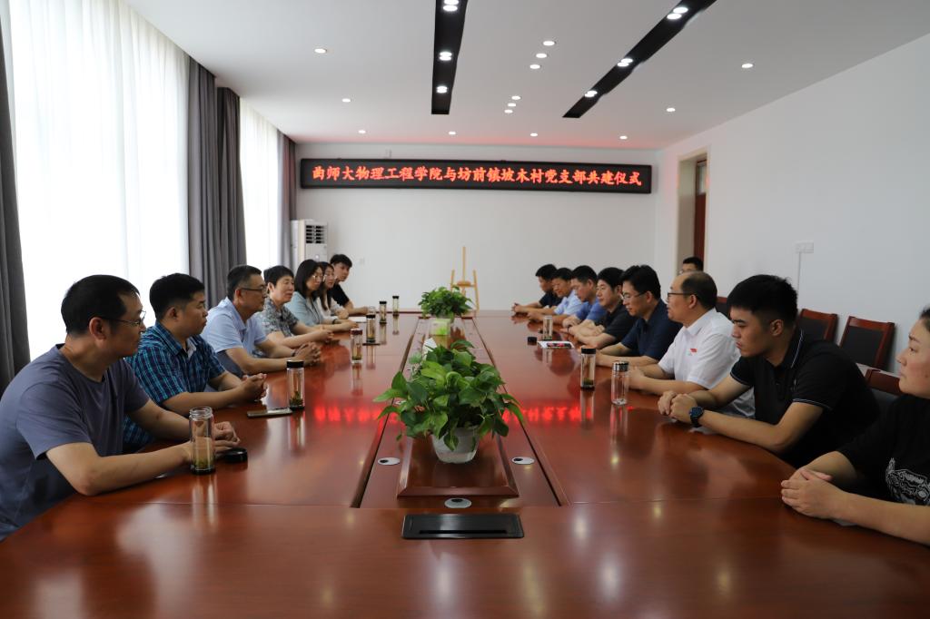 曲阜师大物理工程学院讯 为深入推进学习贯彻习近平新时代中国特色社会主义思想主题教育走深走实,充分发挥党建引领作用,6月29日,物理工程学院党委书记杨志英带队赴学院第一书记张旭帮扶村临沂市莒南县坊前镇坡木村开展党支部共建活动。莒南县人大常委会副主任陈庆金、镇党委书记李永山,学院党委班子成员、本科生第二党支部负责人,球友会网站登录入口派驻坊前镇4名第一书记参加活动。