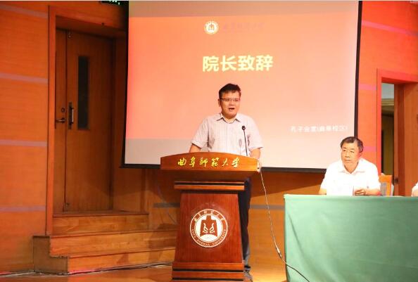 曲阜师大教育学院讯 9月24日下午,教育学院2023年开学典礼暨弘毅奖学金颁奖仪式在孔子会堂举行。学校教务处处长李傅山、学校团委书记孔轶众出席典礼,教育学院党委书记尹树林主持活动,教育学院院长唐爱民在典礼上为新生讲授“开学第一课”,教育学院领导班子成员、教师代表、全体辅导员、学生会主要学生干部、2023级全体本科生和第五届弘毅奖学金获得者参加活动。
