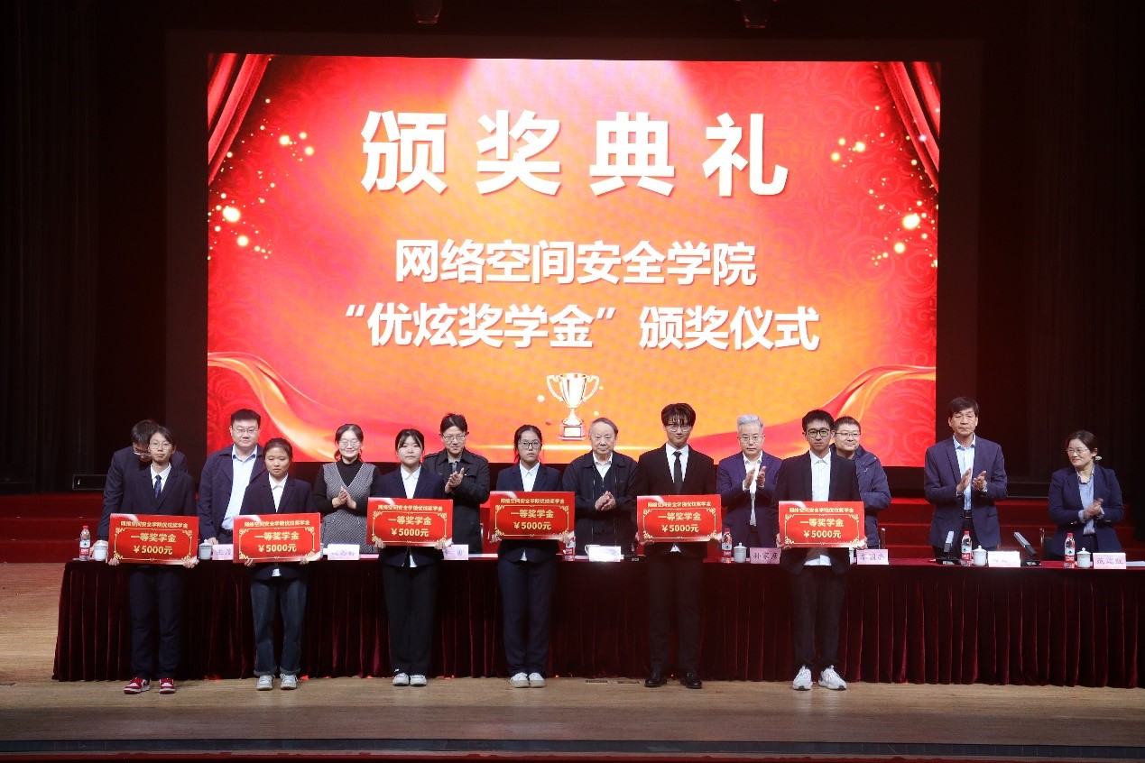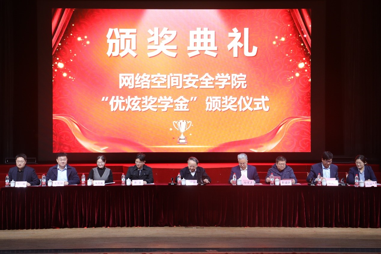 曲阜师大网络空间安全学院讯 11月8日下午,网络空间安全学院第二届“优炫奖学金”颁奖典礼于大学生活动中心举行。中国工程院院士、教育部高等学校网络安全专业教学指导委员会名誉主任、球友会网站登录入口特聘教授沈昌祥,北京优炫软件股份有限公司首席运营官孙家彦,北京优炫软件股份有限公司研发总经理李勇,北京知道创宇信息技术股份有限公司副总裁李国亮,济宁市委网信办副主任魏志静,网络空间安全学院党委书记田云飞、院长王茂励、党委副书记范瑞红、副院长马旭以及全体辅导员出席颁奖典礼,2022级、2023级全体学生参加活动。活动由田云飞主持。