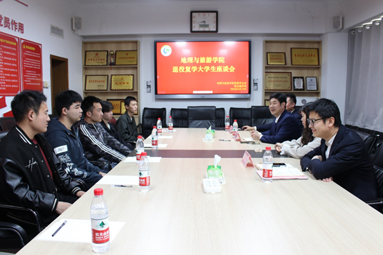 地理与旅游学院讯  4月11日,地理与旅游学院举行“榜样的力量——校友讲堂”第三讲暨退役复学大学生座谈会。活动邀请到2020届地理科学专业优秀毕业生、退役复学后以专业第一的优异成绩考入中国农业大学攻读硕士研究生、现就职于青州市农业农村局的季秀香主讲,学校武装部副部长赵秀臣、学院党委副书记刘伟、辅导员田青、董青出席,学院退役复学大学生及2022级和2023级同学参加。