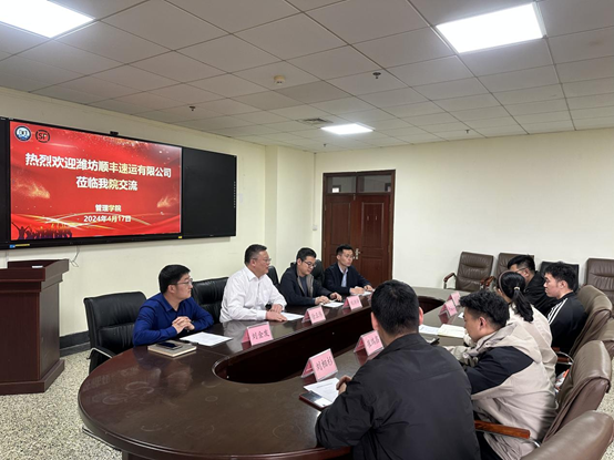 管理学院讯  为落实访企拓岗促就业专项行动,深化校企合作,进一步了解用人单位需求,拓展学生就业空间,4月17日,学院邀请顺丰速运鲁中区和日照区域公司负责人来校召开就业工作推进会暨“访企拓岗”座谈会。学院党委书记徐正伟、党委副书记刘洪铎、副院长刘金发、物流管理专业系主任王成飞参会,会议由党委书记徐正伟主持。