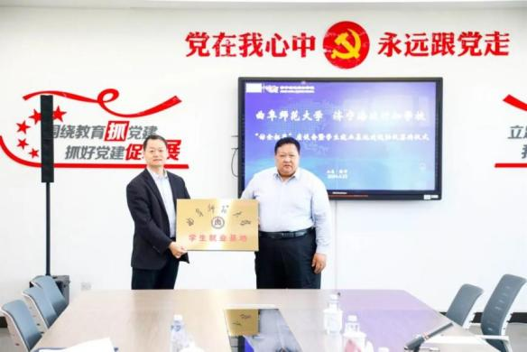 曲阜师大马克思主义学院讯 为落实“访企拓岗促就业”专项行动,促进学生高质量就业,4月23日,马克思主义学院院长孙迪亮、党委副书记姜振栋一行到济宁海达行知学校、济宁京航中等职业学校开展“访企拓岗”专项行动,并与这两所学校共建“学生就业基地”。济宁高新区发展软环境保障局副局长程文军、济宁高新区科技创新局创新体系建设处处长王红亮、济宁海达行知学校校长丰建胜、济宁京航中等职业学校校长张海晨等出席了基地揭牌签约仪式。