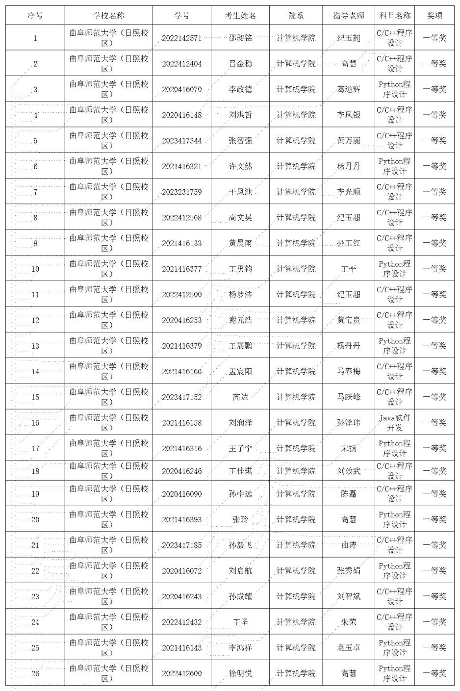 曲阜师大计算机学院讯 由教育部就业指导中心支持、工业和信息化部人才交流中心主办的第十五届“蓝桥杯”全国软件和信息技术专业人才大赛个人赛省赛结果公布,经过激烈角逐,曲师大计算机学院学子在C/C++程序设计、Python程序设计、Web应用开发、Java软件开发组别共有255人获奖,其中26人斩获省级一等奖。
