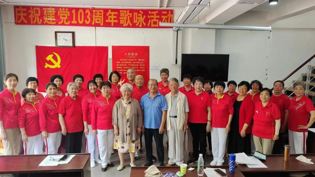 离退休教职工党委讯  为庆祝中国共产党成立103周年,展现广大离退休教职工的爱党爱国热情,6月28日,日照校区老年合唱团在老干部活动中心举办“庆七一”文艺展演。离退休工作处副处长董家忠主持活动。