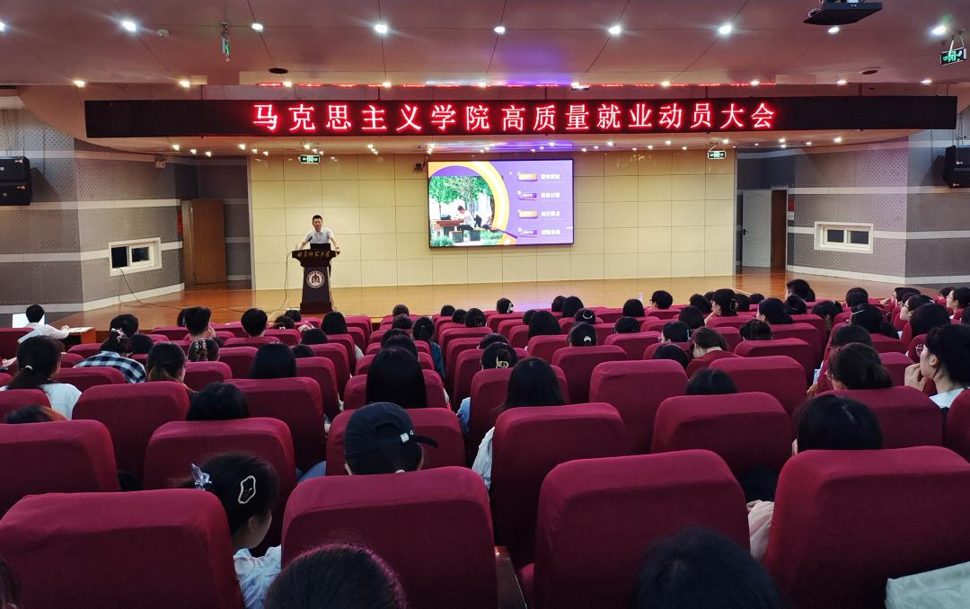 曲阜师大马克思主义学院讯   为扎实做好2025届毕业生高质量就业工作,提振学生高质量就业信心。7月8日,马克思主义学院举办高质量就业动员大会。马克思主义学院党委书记陈庆国、院长孙迪亮、副书记姜振栋、副院长任松峰,全体辅导员及2021级全体本科生参加会议。