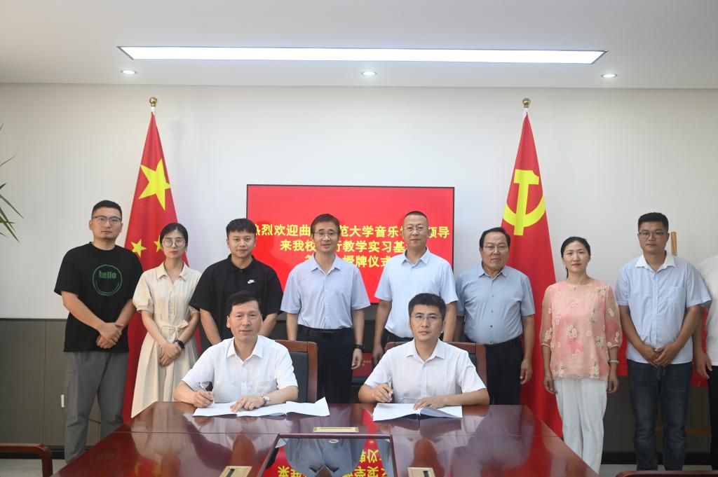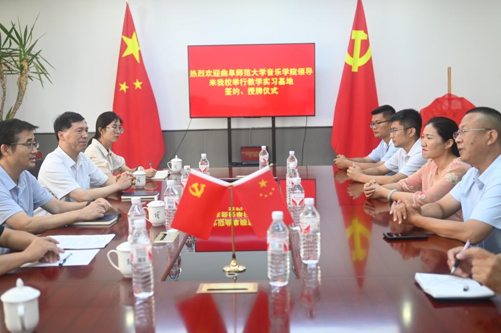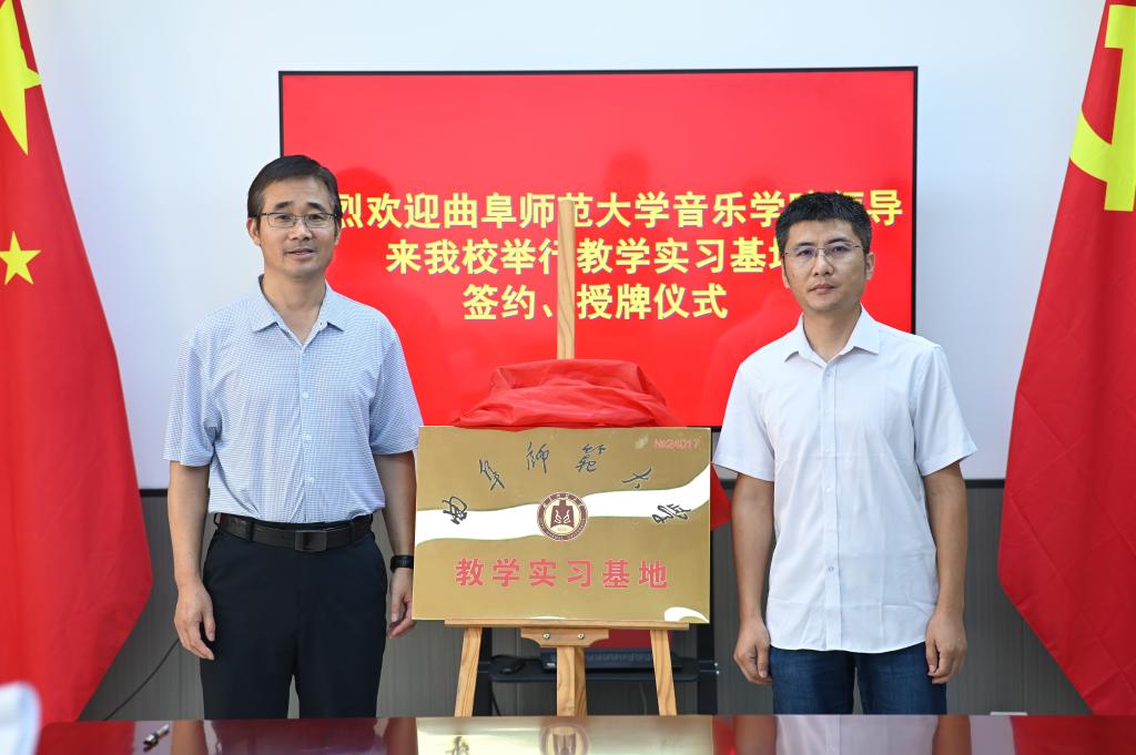 曲阜师大音乐学院讯 为进一步提升教育教学实习质量,共建合作育人机制,7月9日上午,音乐学院党委书记谢仕兴、院长肖桂彬一行前往曲阜鲁韵学校举行教学实习基地签约暨授牌仪式。曲阜鲁韵学校李振华校长及学校相关领导、老师共同参加仪式。