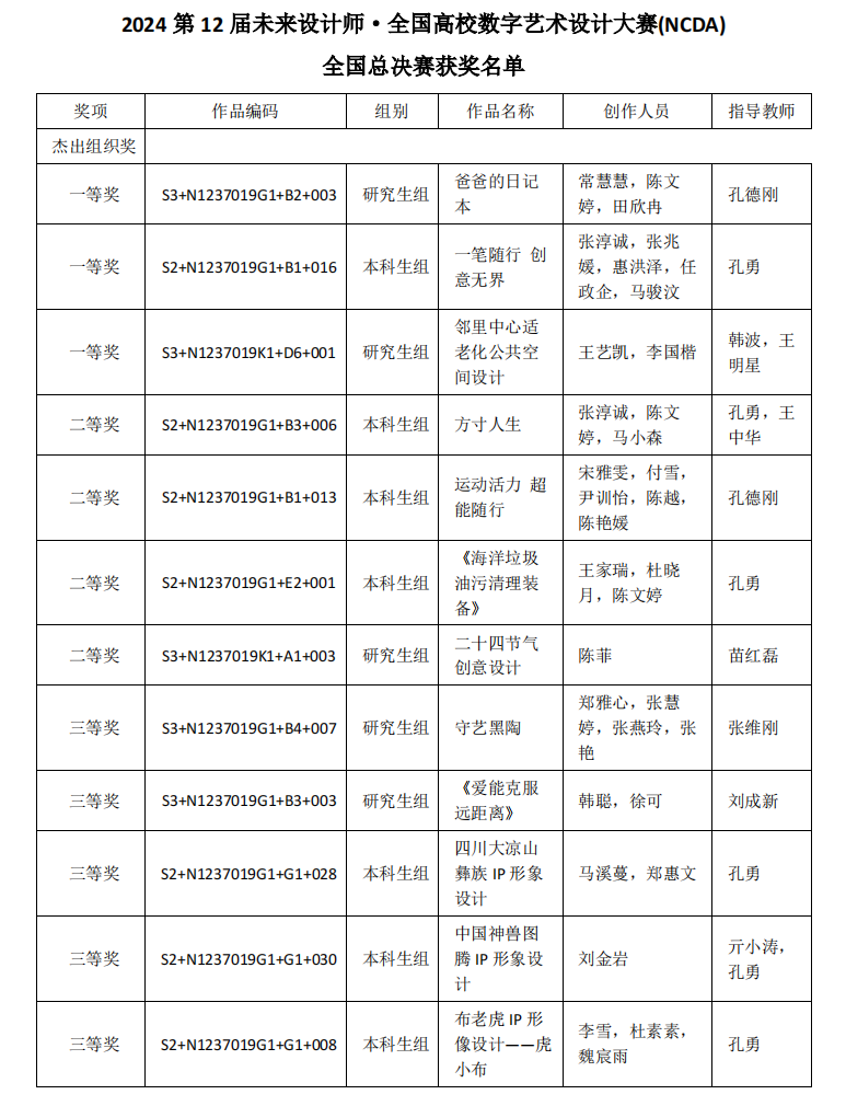 曲阜师大传媒学院讯  近日,第12届未来设计师·全国高校数字艺术设计大赛全国总评审结果和山东赛区评审结果揭晓。传媒学子在比赛中获全国奖项14件,其中一等奖3件,二等奖4件,三等奖6件,人气奖1件;在本届山东赛区中,获一等奖17件,二等奖13件,三等奖24件。