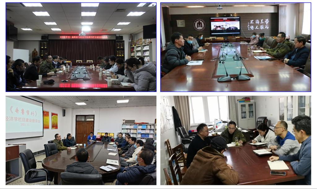 曲阜师大新闻中心讯   为深挖潜能、优势合作、加强联动、寻求突破,提高办刊质量;也为有效搭建学术平台,推动与曲阜师大优势学科合作,11月22—23日,《齐鲁学刊》编辑部分别与日照校区政治与公共管理学院、马克思主义学院、经济学院和法学院就“孔子·儒家·齐鲁文化研究”“哲学综合”“经济学研究”“法学研究”等栏目建设举行了座谈会。